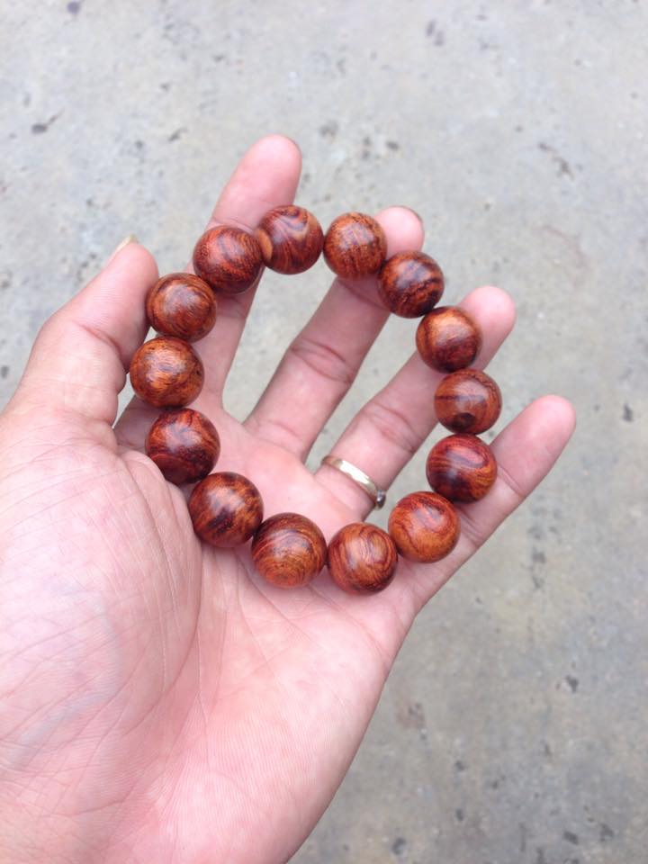 Vòng tay gỗ sưa đỏ 16mm x 14 hạt vân đẹp